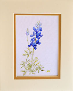 8" x 10" oil on canvas board. Botanical bouquet of Texas bluebonnets with signature hidden ladybug